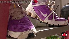 I love my slut's footjob in sneakers