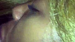 ebony amateur takes white cock creampie
