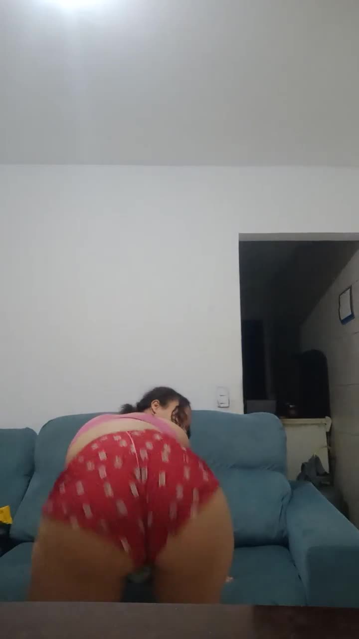 Suggestive chubby Latina prostitute dances sexy, strips naked, and thrusts her fat ass in POV